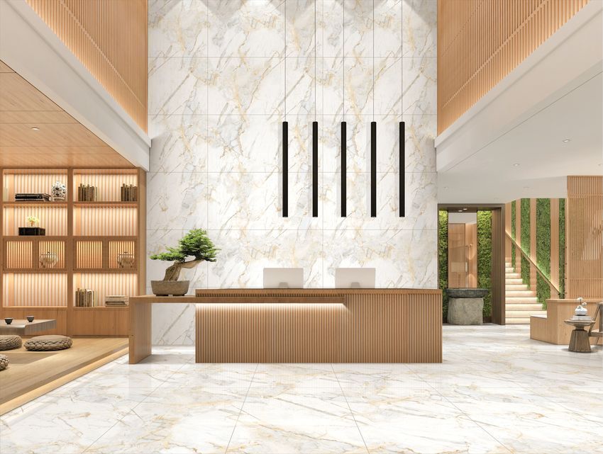 Gạch nhập khẩu Ấn Độ 80×160 Endless Calacatta Bright thích hợp sử dụng cho nhiều khu vực như phòng khách, sảnh, nhà hàng, khách sạn và không gian thương mại. Tông màu trắng phối vân đá dễ dàng kết hợp với nhiều phong cách nội thất khác nhau.