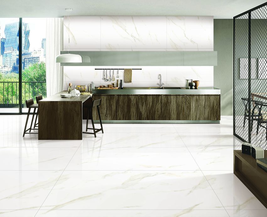 Gạch nhập khẩu Ấn Độ 80×160 Endless Calacatta Earth vân đá, men bóng, Porcelain, 6 mặt vân đa dạng, ứng dụng vượt trội cho mọi không gian sang trọng.