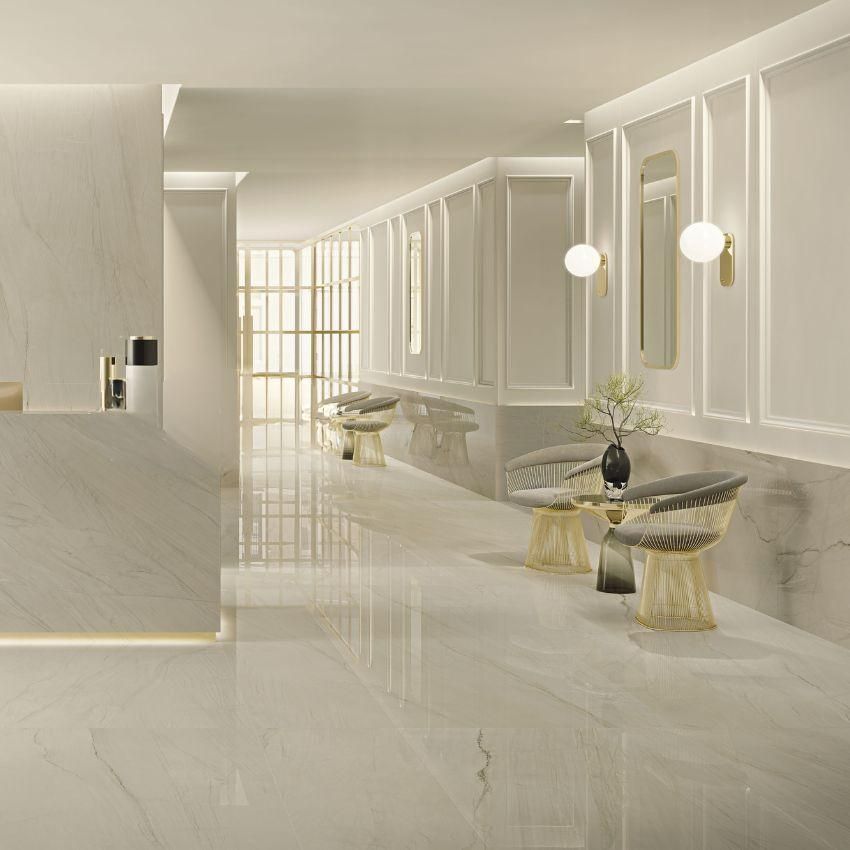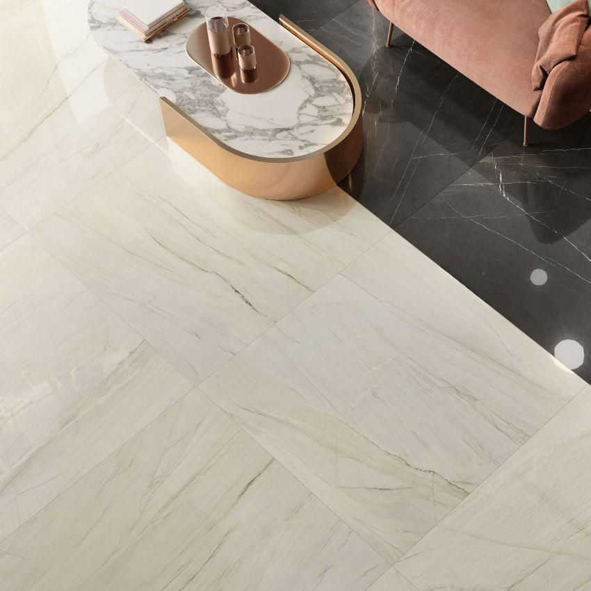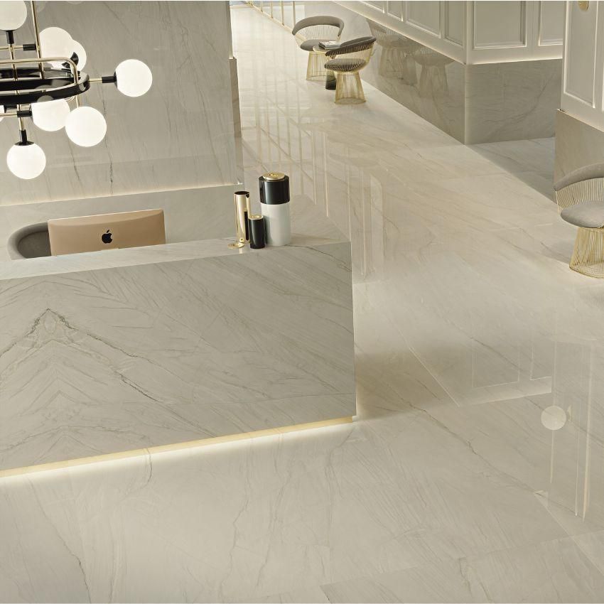 Gạch Calacatta Mont Blanc 120×120 phù hợp để lát sàn, ốp tường các không gian nội thất cao cấp như phòng khách, đại sảnh, showroom, khách sạn, biệt thự…